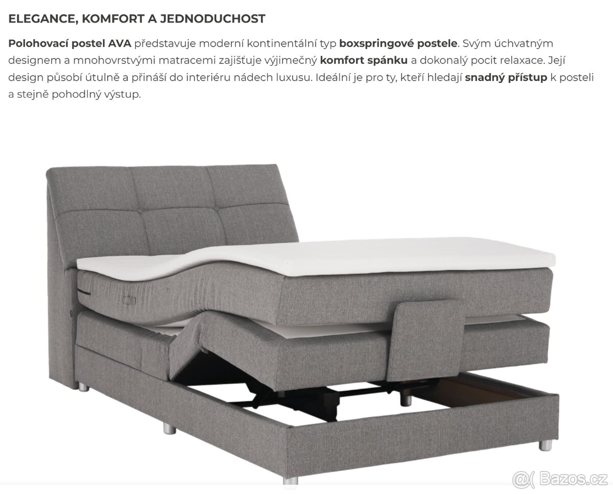 Prodáme zánovní (používání 4 měsíce, plně funkční a bez poškození) s polohovací postel AVA. Vše zřejmé z fotografií. Přesné informace lze nalézt na několika webech na netu. Osobní odběr nutný.