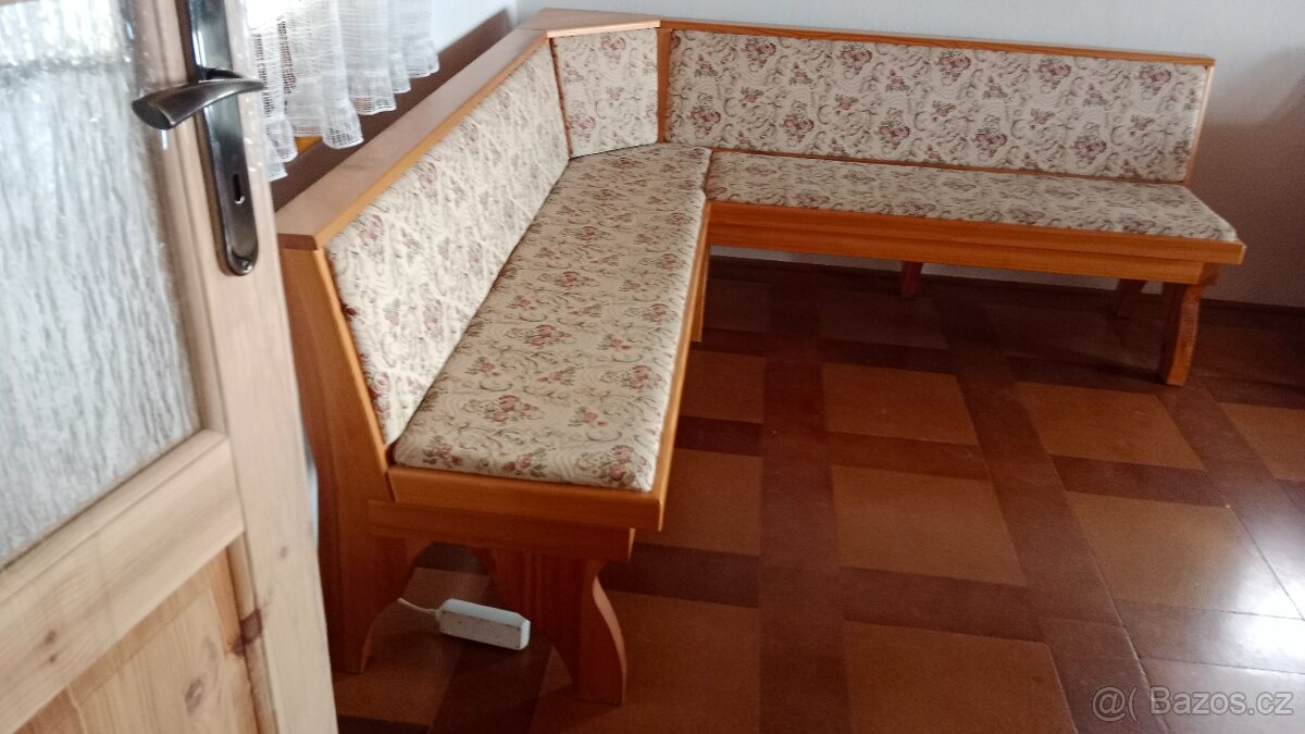 Rohová lavice 183x183cm, čalouněné sedáky a opěrky lze snadno vyjmout,vyrobeno truhlářem, lze dovézt do Českých Budějovic