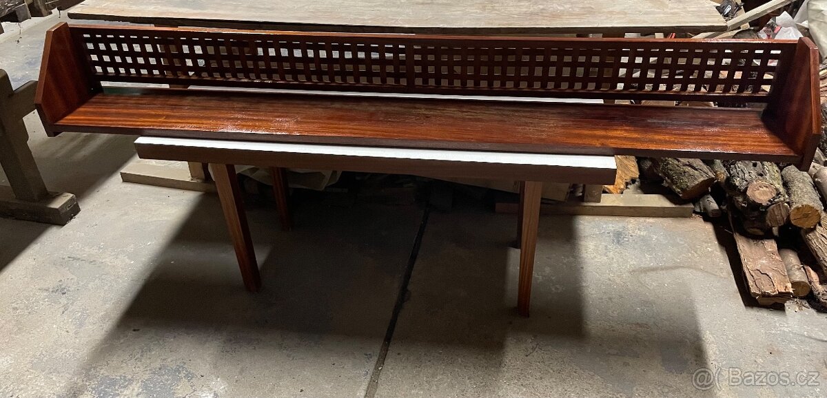 Prodám okrasnou poličku z tmavě hnědé dýhy. Délka poličky je 194,5 cm. Polička je nově nalakovaná, jelikož byla politá vodou z květináčů. Na některých místech jsou vidět stopy od vody. Cena 300 Kč. Pouze osobní odvoz v Tlumačově.