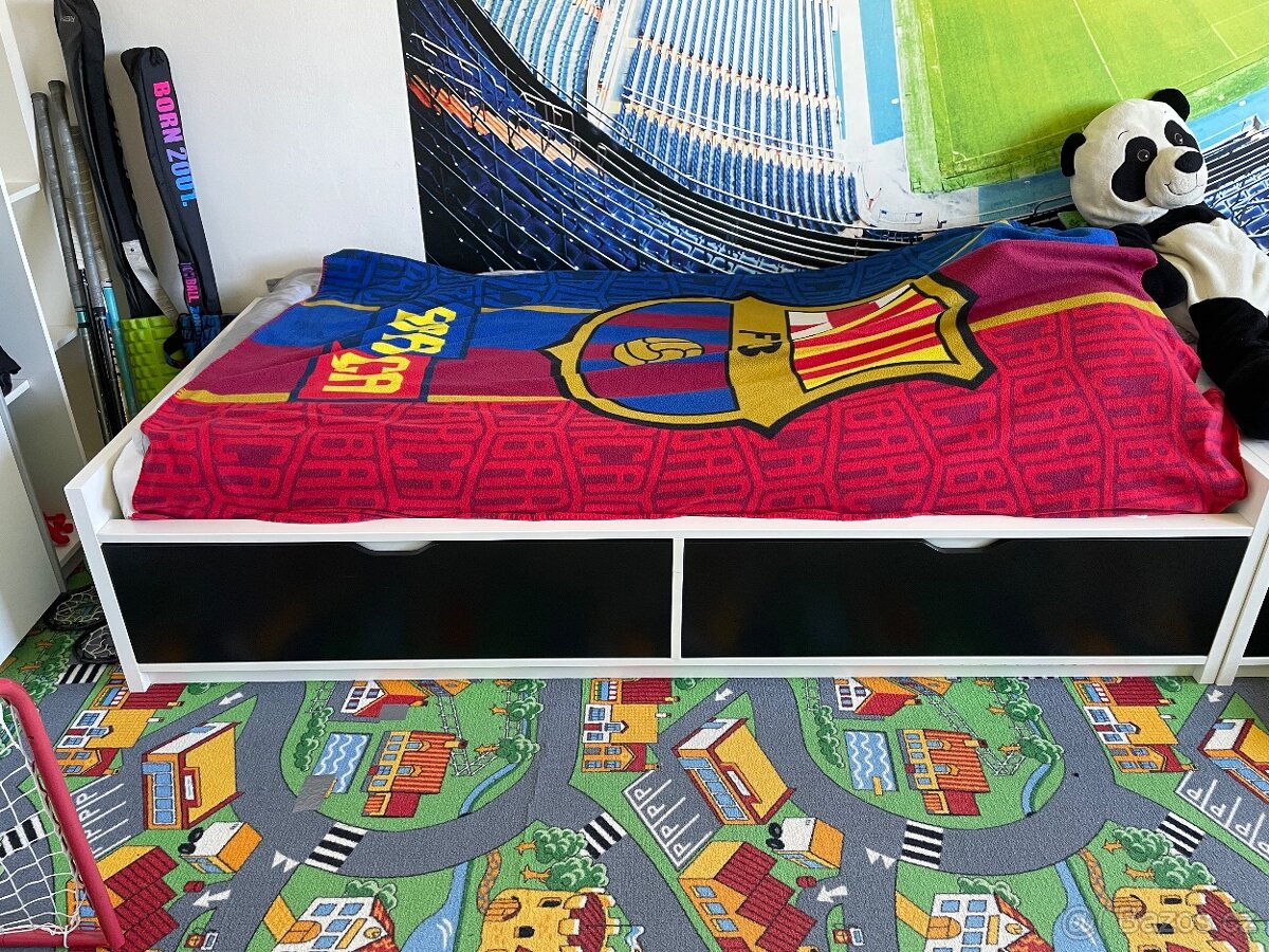 2x bílá postel Flaxa z Ikei, každá s 2 černými šuplíky. Včetně roštů. Cena dohromady. Velikost 90x200. Zatím sestavená.