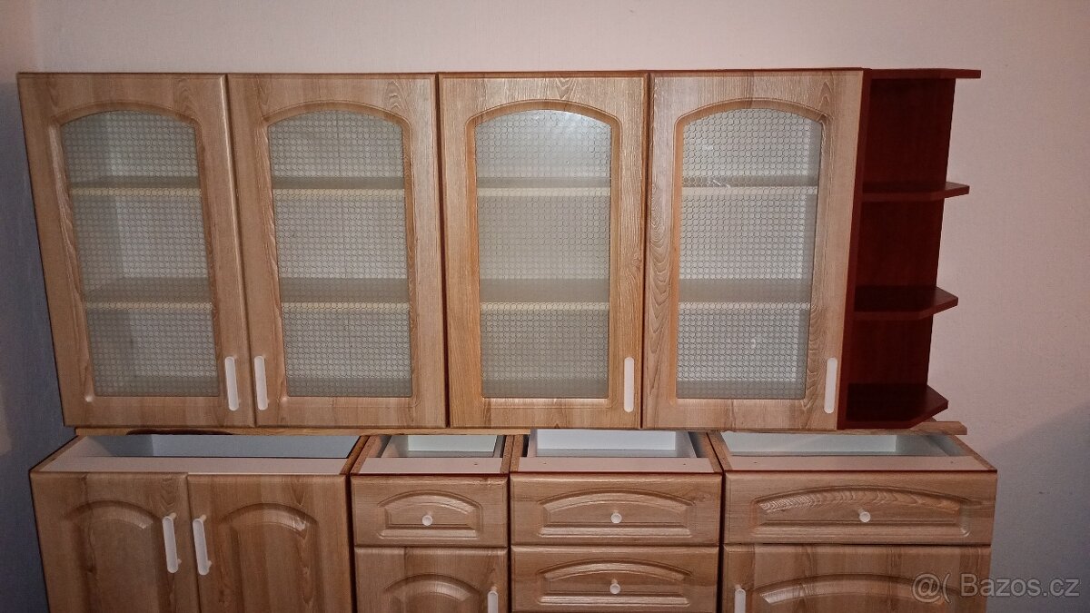 Prodám kuchyňskou linkou v dobrém stavu vhodnou na chatu, chalupu a možná i do malého bytu. Šířka linky je 181 cm a výška dolních skříněk je 82 cm. Šířka Horní části linky je 188 cm ,, kvůli rohové poličky a výška horních skříněk je 71 cm. Linka je bez pracovní desky. Pouze osobní odběr.