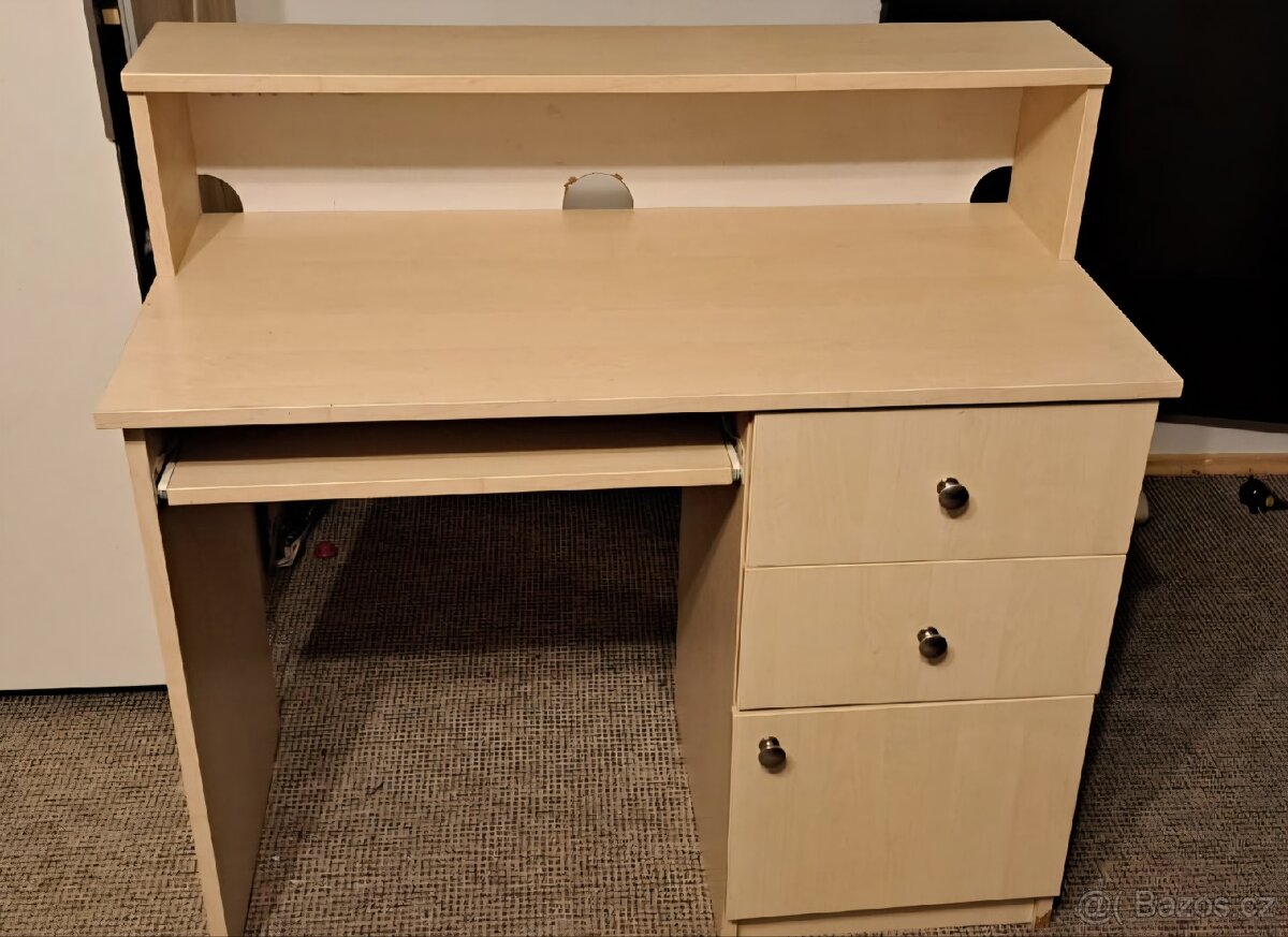 Prodám dětský psací stůl. Má vysunovací poličku na klávesnici, 2 šuplíky a skříňku.