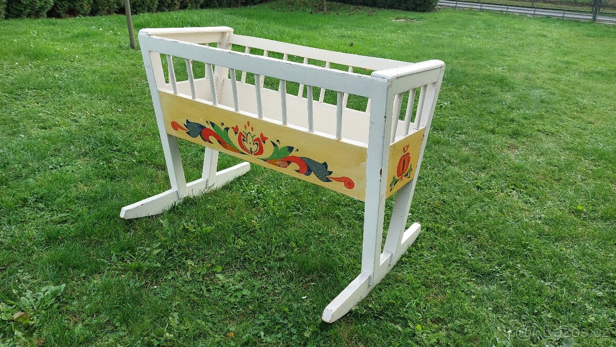 Stará dřevěná malovaná kolébka - kolíbka